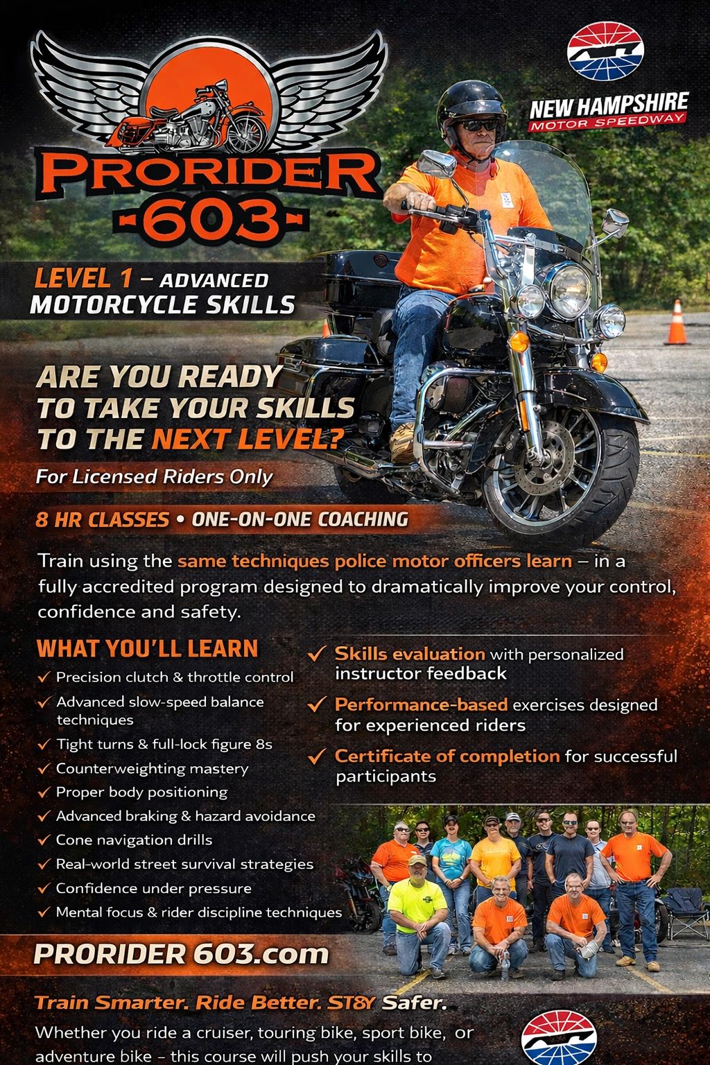 At ProRider 603, we don’t just teach riders how to ride better—we train them to ride prepared, because one day, the skills you learn here could save your life.